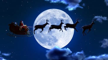 Santa Claus and his reindeer make a magical trip delivering beautifully wrapped presents to children around the world